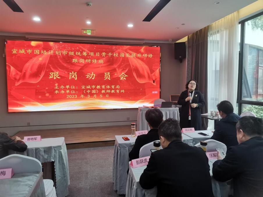 为落实《中共中央 国务院关于全面深化新时代教师队伍建设改革的意见》,依据中共中央组织部、教育部《关于印发<中小学学校领导人员管理暂行办法>的通知》,教育部《义务教育学校校长专业标准》《幼儿园园长专业标准》《义务教育学校管理标准》等文件精神,宣城市国培计划市级统筹项目骨干校园长提升研修跟岗研修班于3月5日在南通市星程酒店五楼会议室顺利开班。
